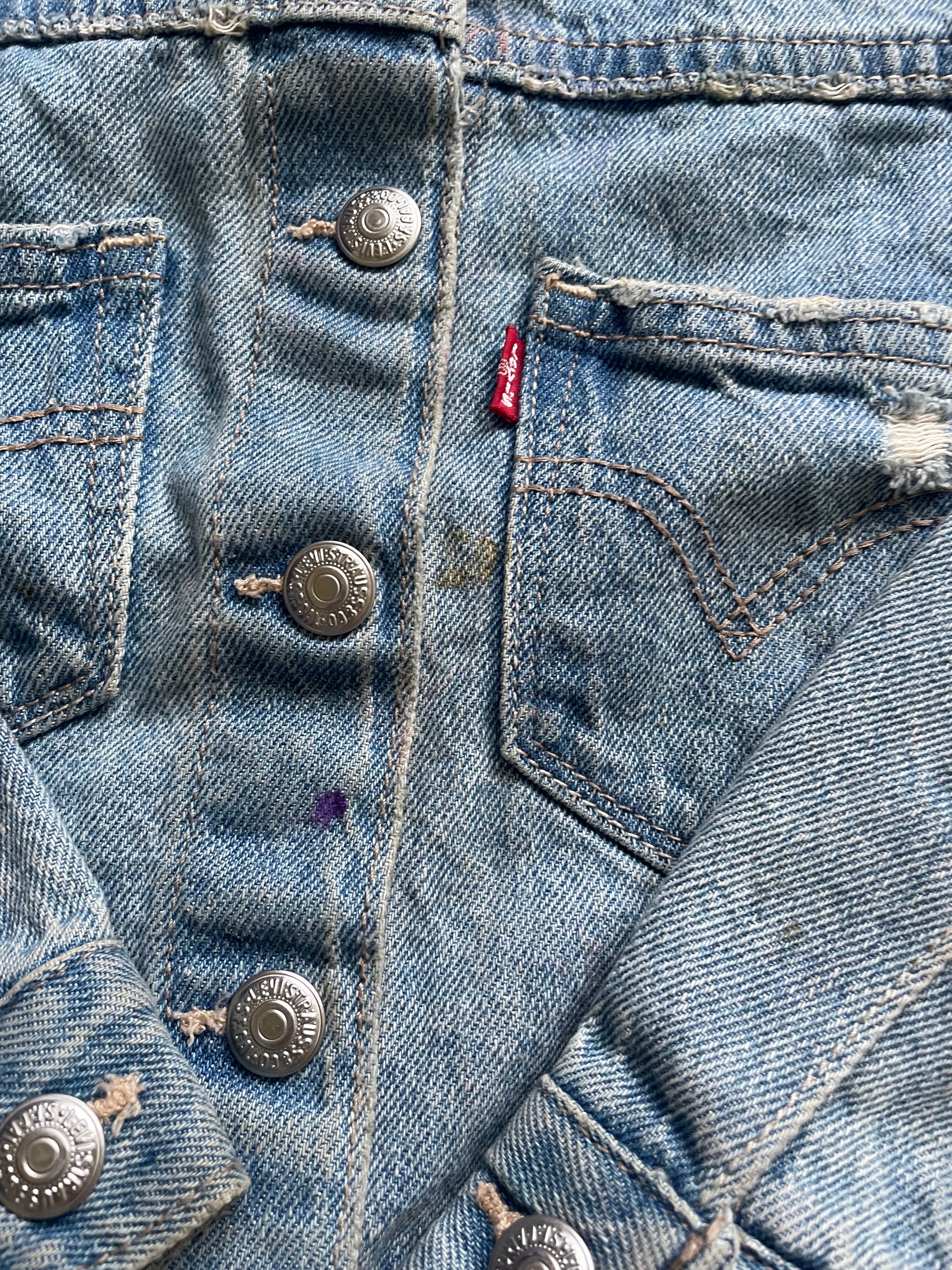 肩やポケット部分のダメージ加工がヴィンテージらしいアクセントに。