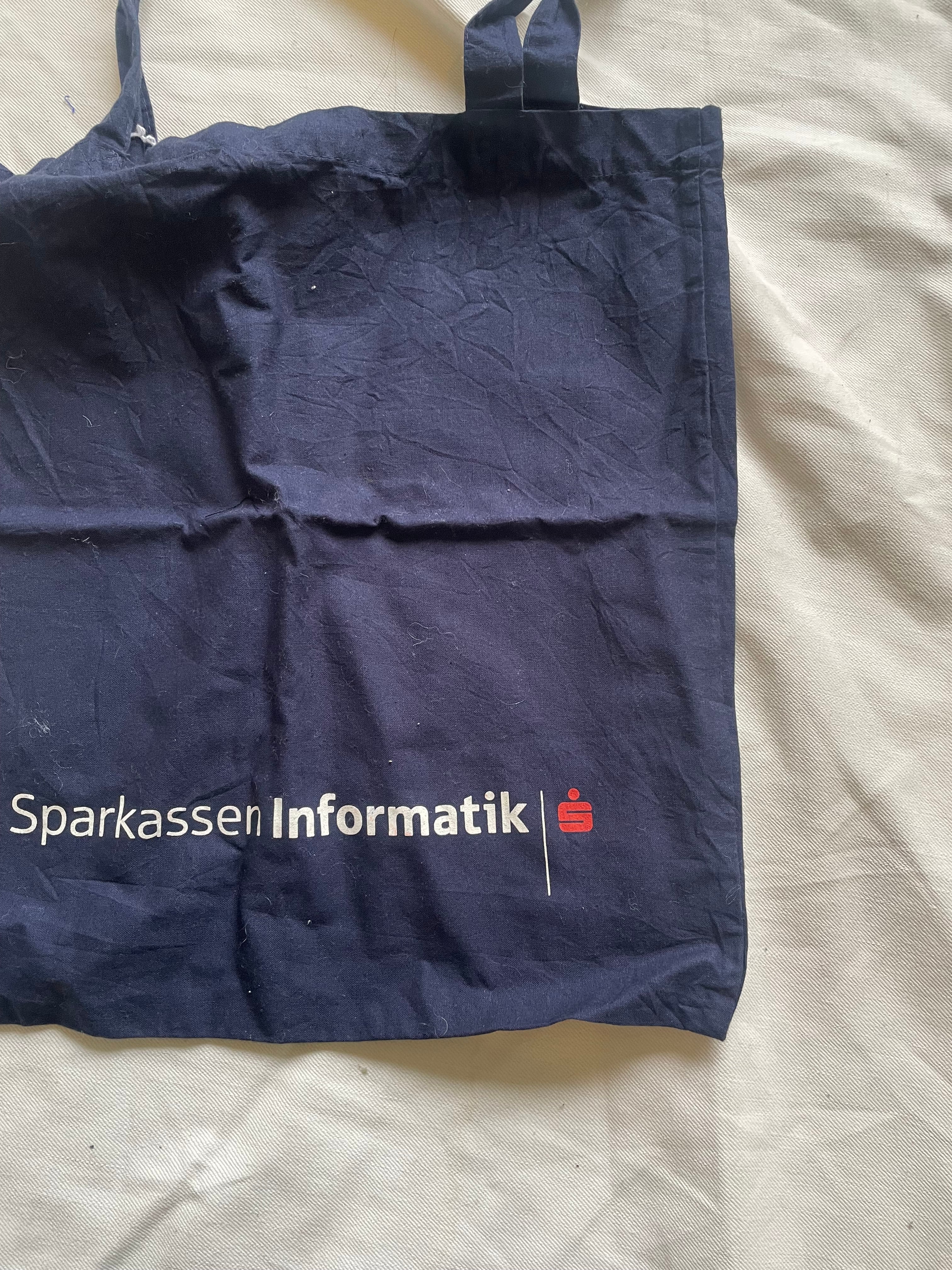 「Sparkassen Informatik」のロゴ入りヴィンテージエコバッグ。