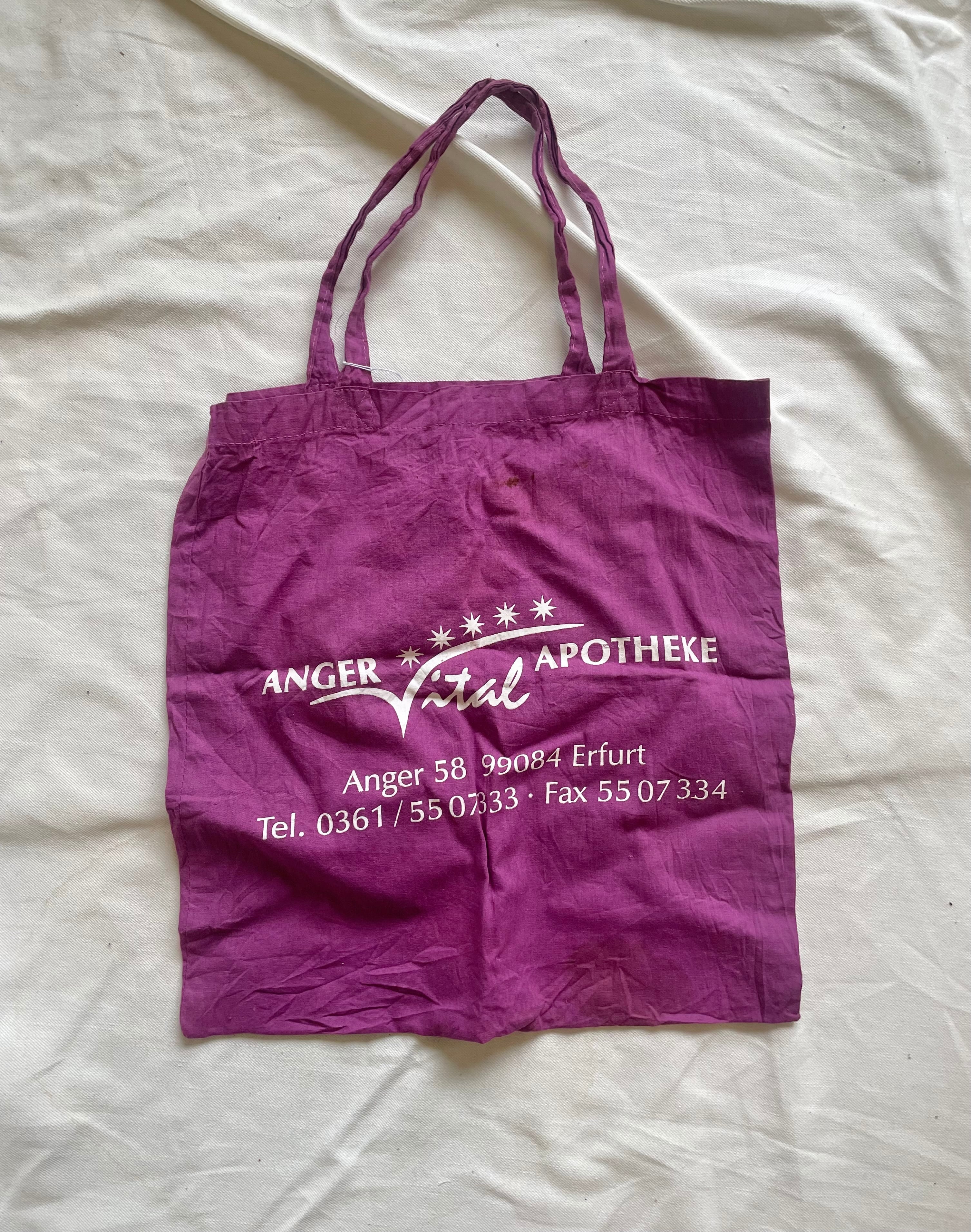 ドイツ・エアフルト(Erfurt)の住所と電話番号がプリントされた、 企業用ヴィンテージエコバッグ。 現在では使われなくなった表記やフォントが、時代性を感じさせる一枚。 発色の良いパープルカラーがスタイリングのポイントになります。 サクッと持って、こなれ感が出るカラー。 さがすとなかなか無いpurple、おすすめです◎ 縦 39㎝ 横 37㎝