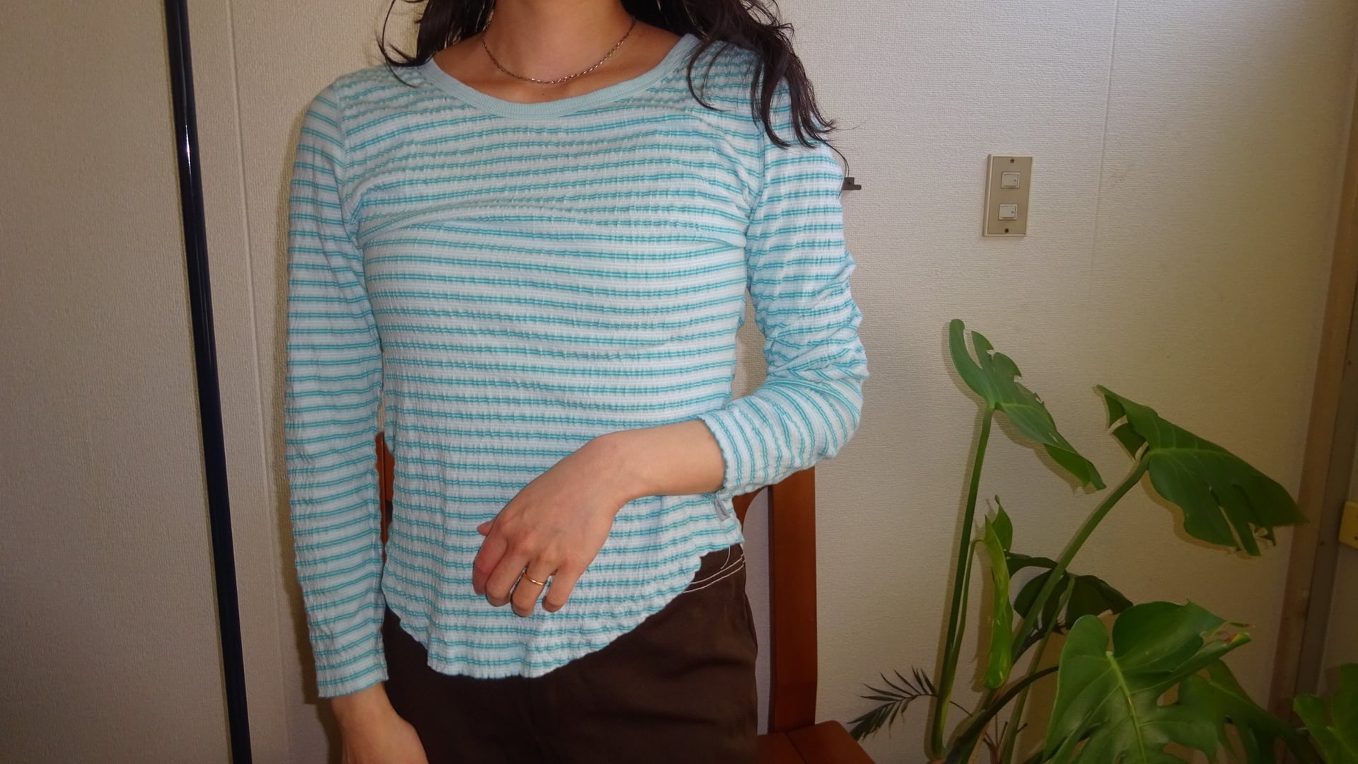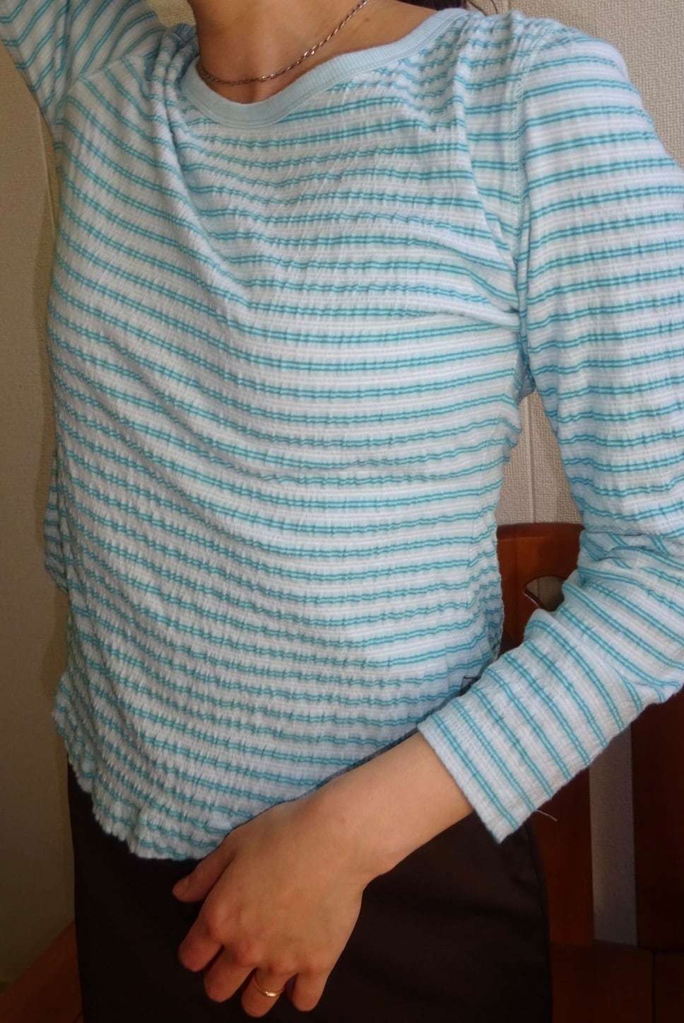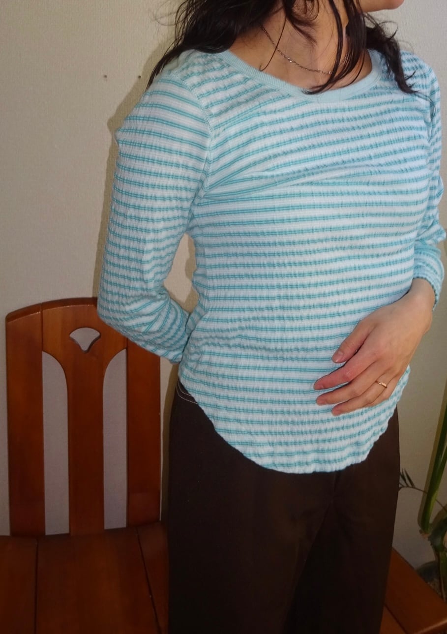 淡いミントブルーの細ボーダーがかわいい、