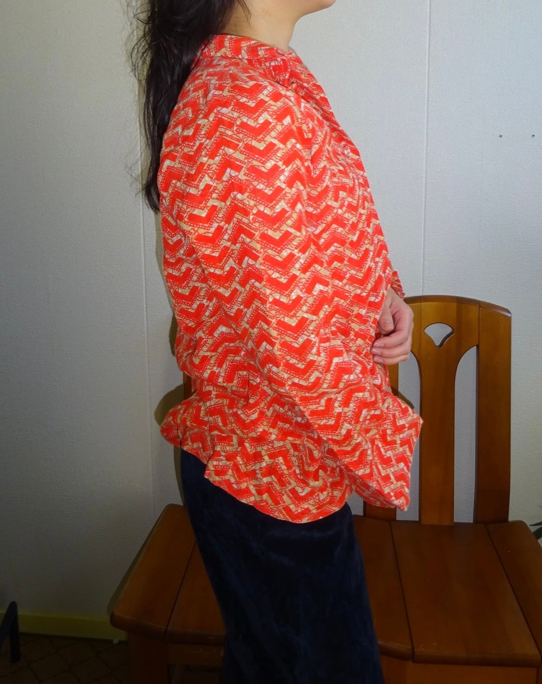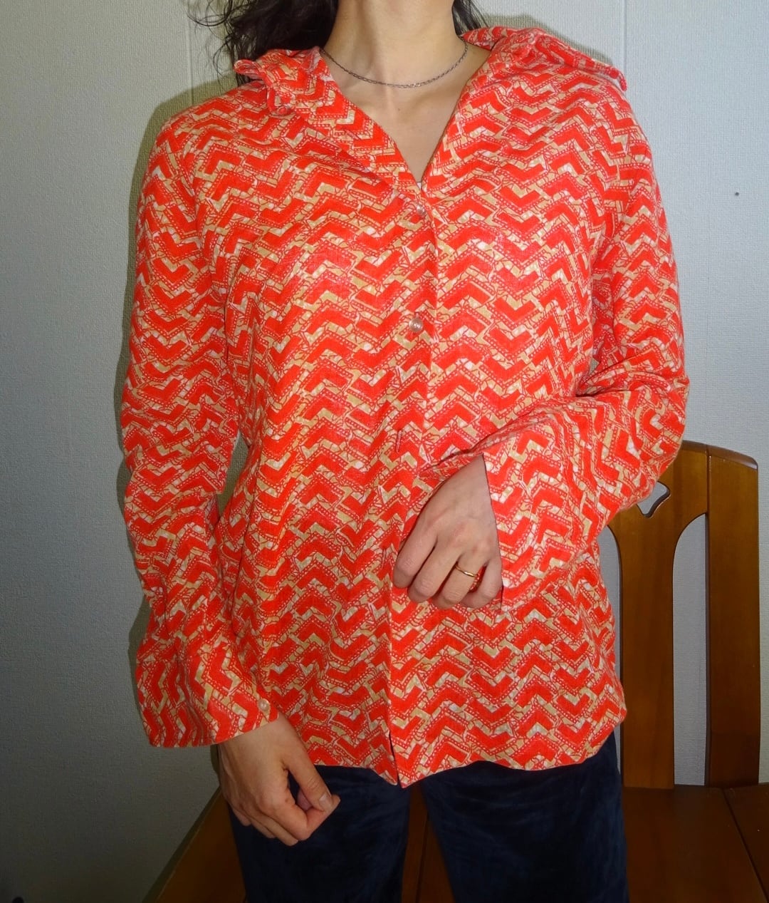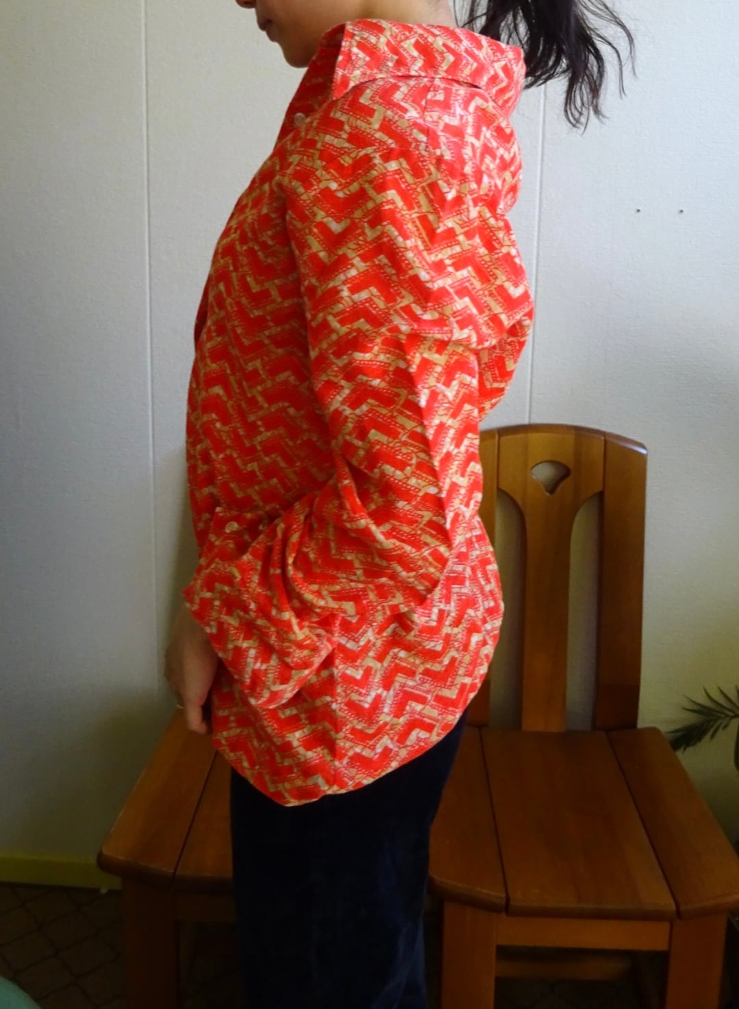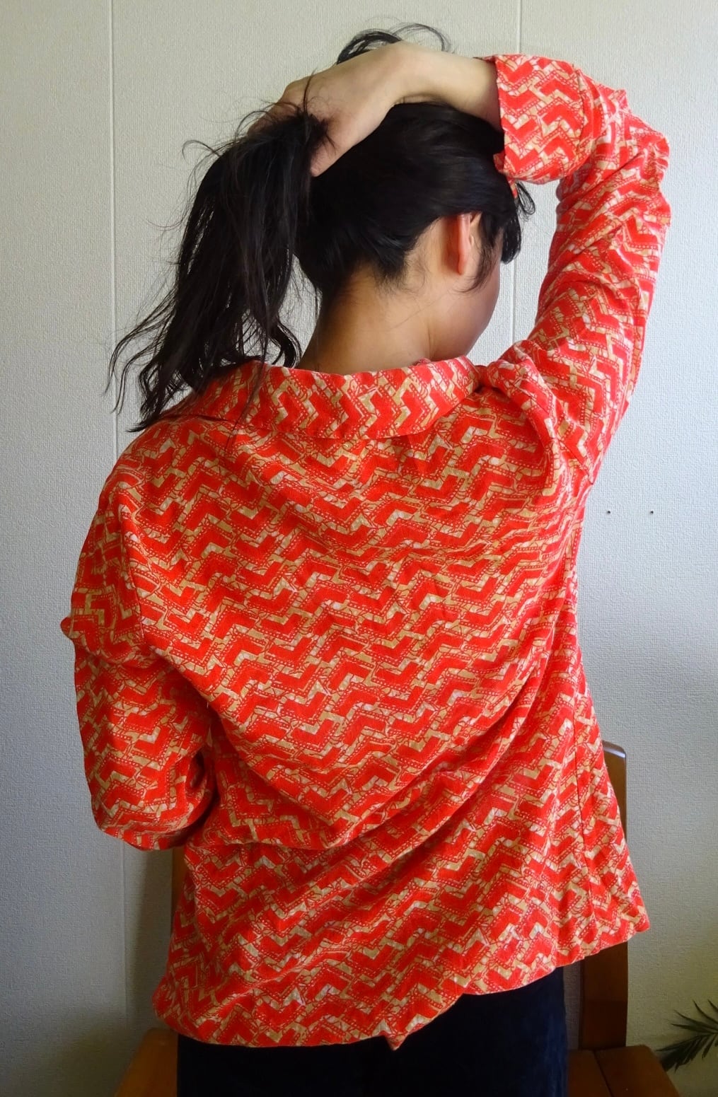 やや透け感のある軽やかな生地と、当時らしい大きめの襟が相まって、