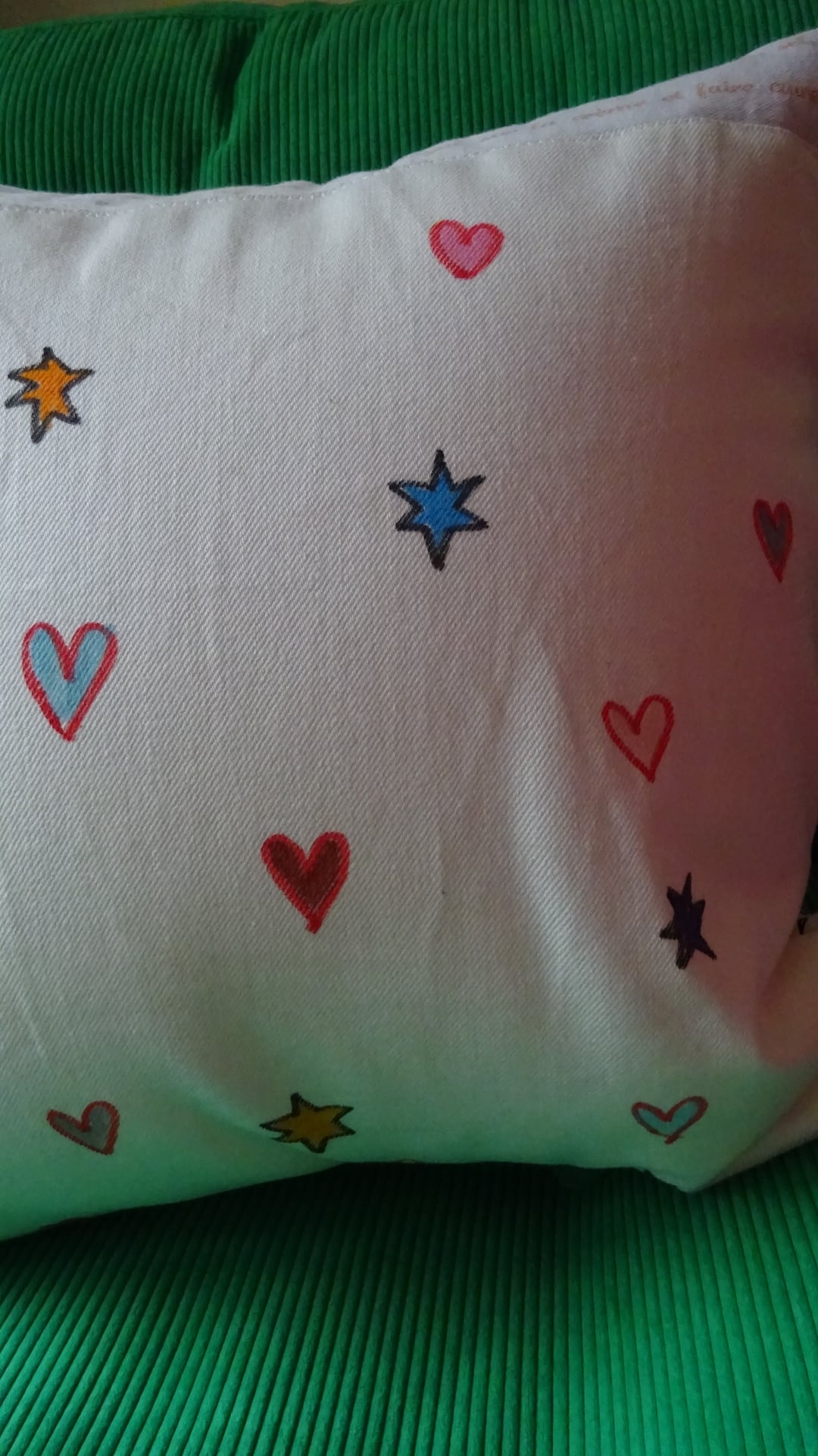 70s~ディッシュファブリックと♡を掛け合わせたクッション。