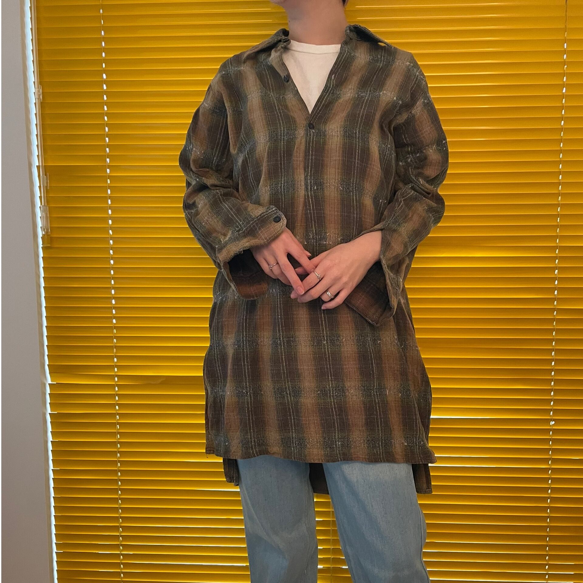 着丈が長く、前開きではなくプルオーバーになっているのが特徴です。